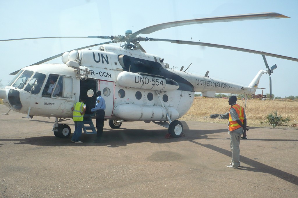 Six of us went by MI-8 helicopter in the morning at 11.15 a.m and it took only 35 minutes from Malakal to Melut. We arrived in Melut at 11.50 a.m. and as soon as we landed our colleague from UNMIS Civil Affairs in Melut office, AA, took us to see the Melut County Commissioner for a courtesy visit.